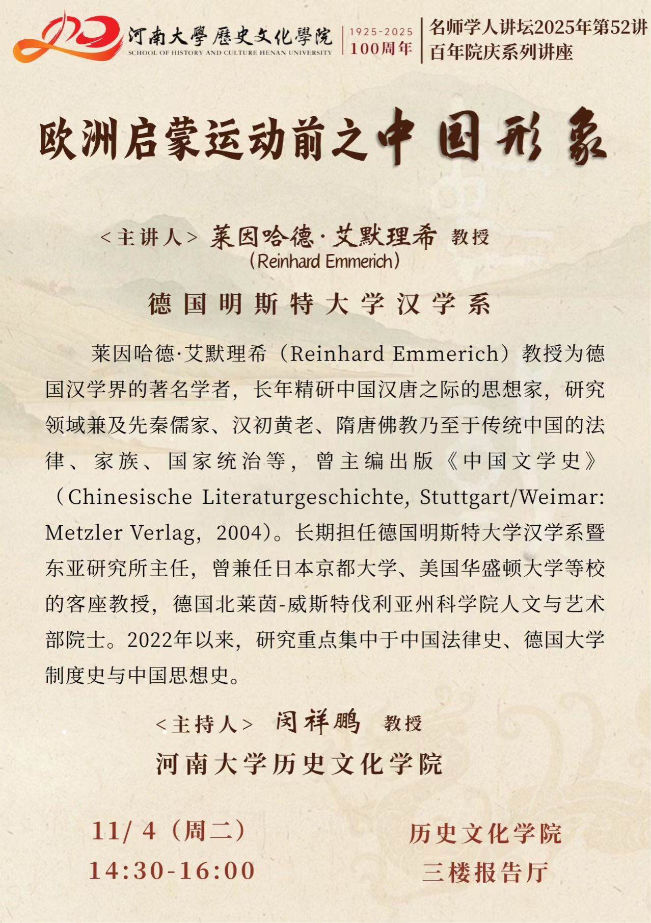 【讲座预告】莱茵哈德·艾默理希:欧洲启蒙运动前之中国形象