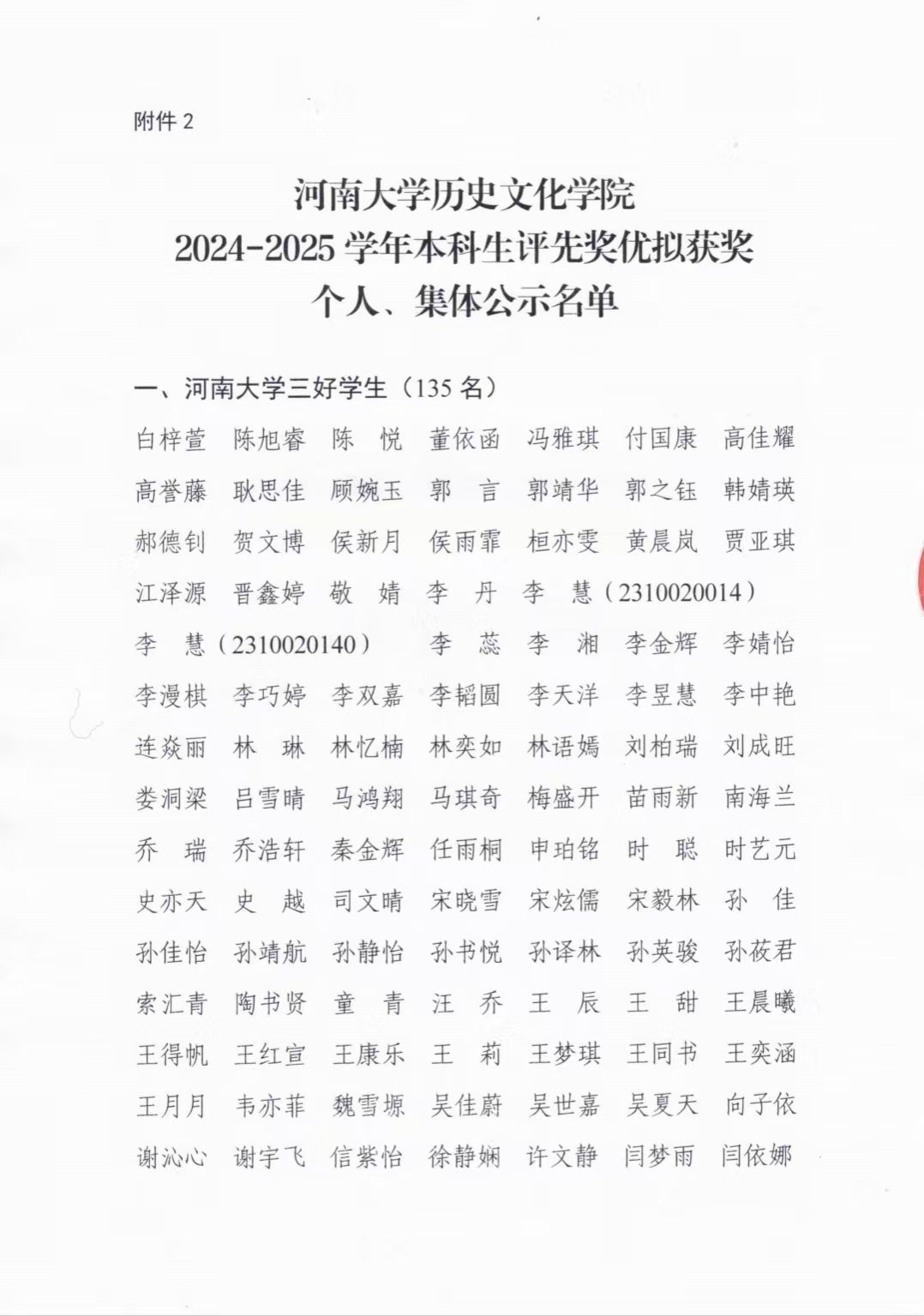 国产无码 2024-2025学年本科生评先奖优拟获奖个人、集体公示名单