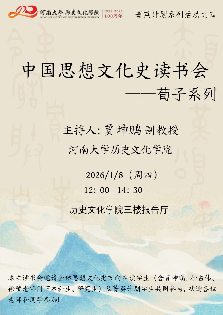 【讲座预告】菁英计划系列活动之四:中国思想文化史读书会——荀子系列