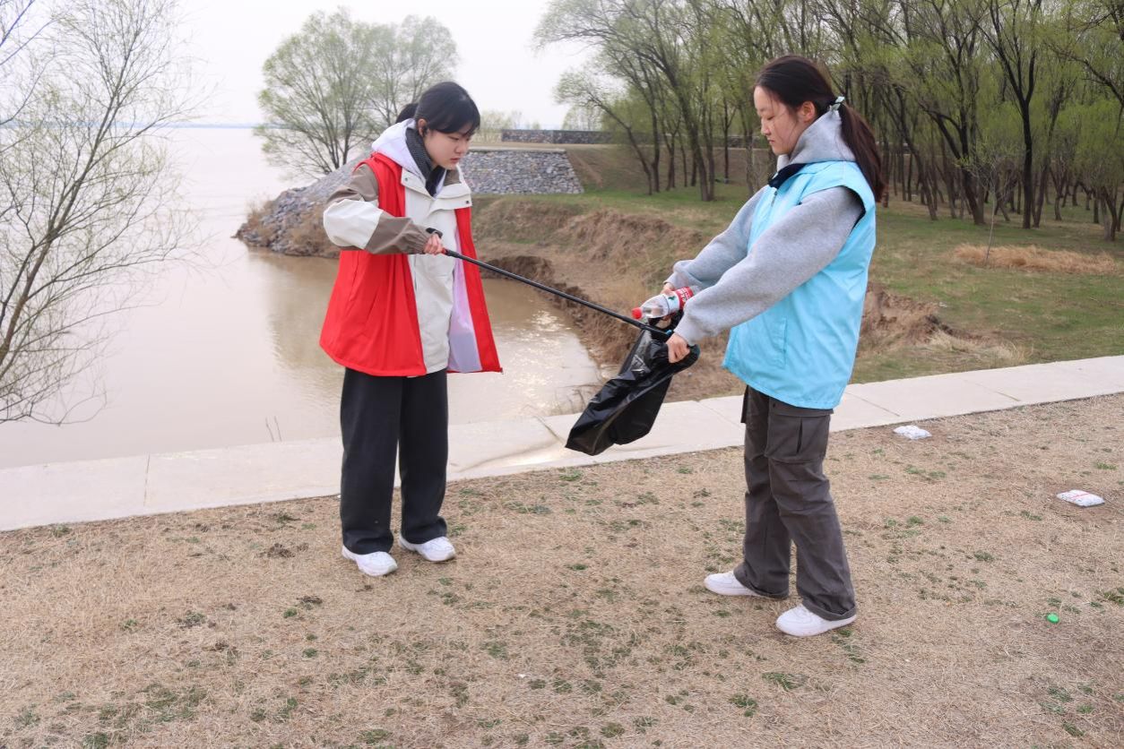 在随后开展的黄河沿岸垃圾清捡行动中,团队成员与本科生第一党支部成员们手持垃圾夹、垃圾袋等工具,分组对堤岸道路、滩涂周边的塑料废弃物进行细致清理。他们以实际行动落实黄河沿岸污染防治要求,将雷锋志愿服务精神与党员的责任担当融为一体,用青春双手守护长河岸绿的母亲河。